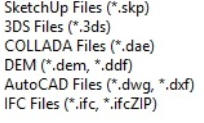 Mijn service kent twee mogelijkheden. U kunt uw 3D model aanleveren uit Sketchup, AutoDesk Revit, en IFC-files, waarna ik ermee aan de slag ga om de gewenste artist impressie(s) te produceren.Zie ook onderstaand figuur van files wat ik kan gebruiken om te importeren. Een andere mogelijkheid is dat ik ook het werk van het 3D model u uit handen neem. Daarvoor heb ik 2D-tekeningen (liefst in dwg-formaat), referenties en een materiaaloverzicht nodig om een zo accuraat mogelijk 3D model te kunnen maken.